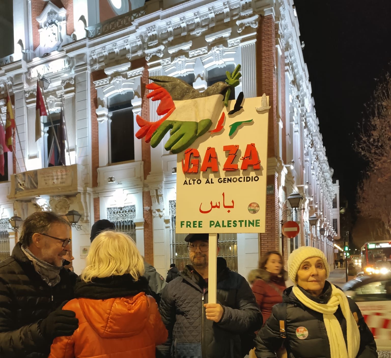 Este jueves 16 de enero en la plaza del Altozano de Albacete tuvo lugar una cadena humana para denunciar el genocidio que está sufriendo el pueblo palestino.