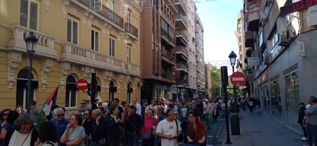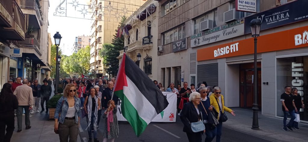 Este sábado 25 de octubre, en Albacete, más de mil personas se manifestaron pidiendo el fin del genocidio que Israel está cometiendo sobre el pueblo palestino y exigiendo una paz justa y duradera. La manifestación empezó en la Punta del Parque y continuó hasta la plaza del Altozano, por la calle Ancha.