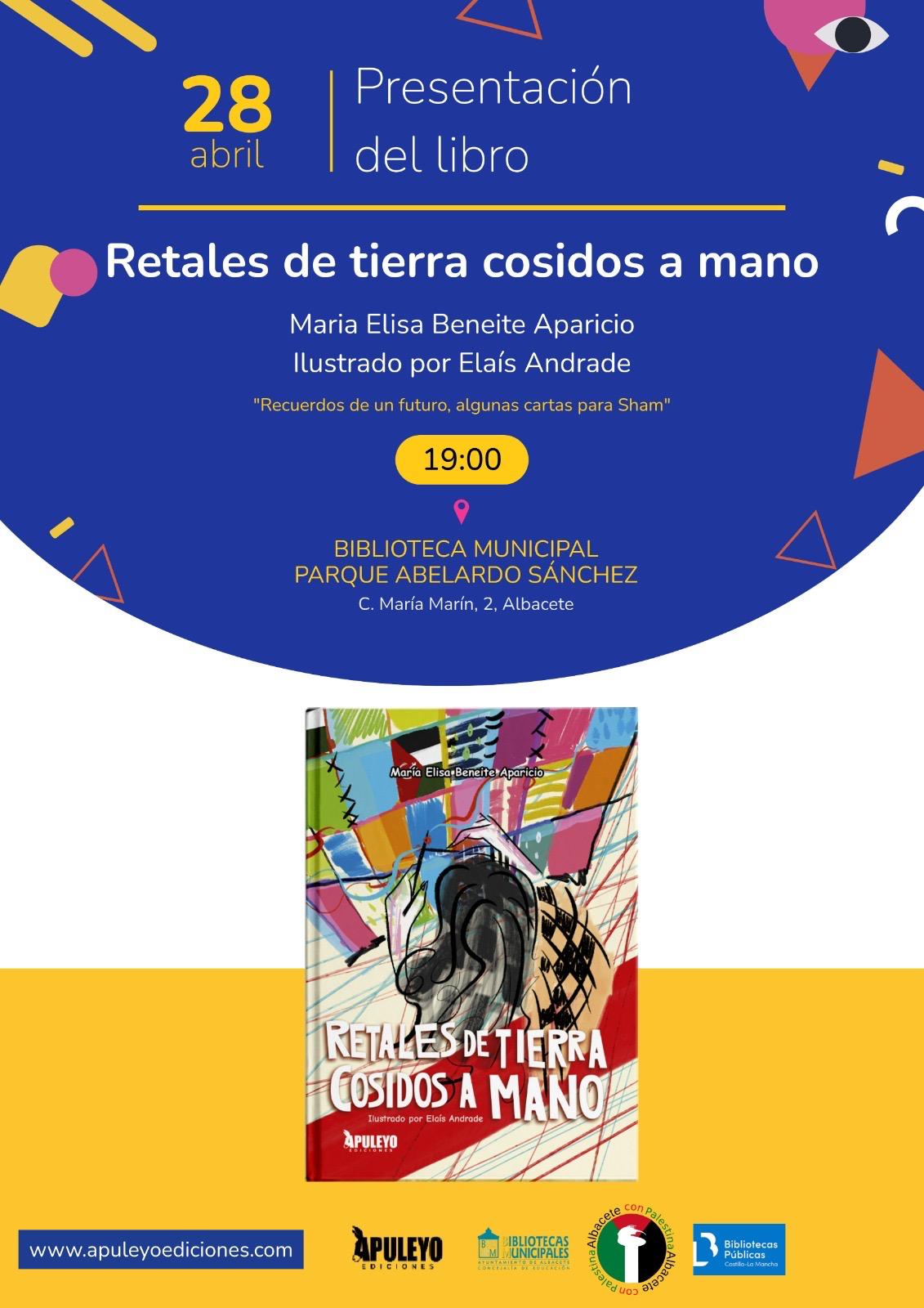 La asociación Albacete con Palestina organiza la presentación del libro “Retales de tierra cosidos a mano”, un acto que tendrá lugar el martes 28 a las 19:00 horas en la Biblioteca Municipal del Parque Abelardo Sánchez, situada en la calle María Marín, 2.